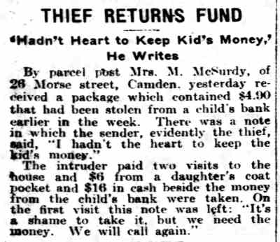 MORSE STREET in East Camden was named after Henry G. Morse, the founder and president of the New York Shipbuilding Corporation. The Yorkship Village housing project in the Fairview section of Camden was built to house workers from the New York Shipbuilding Corporation yards on Broadway at Morgan Boulevard. Running parallel to Marlton Avenue from Carman Street, across Baird Boulevard, to Rosemont Avenue in Pennsauken, Morse Street was for many years the northeastern boundary of Stockton Park. Houses were built east of Westminster Street in the 1920s, and more were built in the 1930s and 1940s. In the early 1950s, property was acquired along Morse Street, and the Peter J. McGuire Gardens public housing project was built there, between Bank and Watson Streets. In the 1980s, when the crack cocaine plague struck Camden, drug dealers set up shop in McGuire Gardens and in the 200 block of Morse Street, which became known as "The Alley". A multi-million dollar cocaine led by J.R. Rivera operated there, past of a web of corruption that connected to the Mayor's office and into the police department. After being convicted of drug offenses and other crimes, Rivera gave evidence that led to the conviction of Camden Mayor Milton Milan. In July of 2004, Mayor Gwendolyn Faison announced the demolition of houses on "The Alley". New homes are to be erected by the St. Joseph Carpenter Society, who have successfully completed other projects in East Camden. |