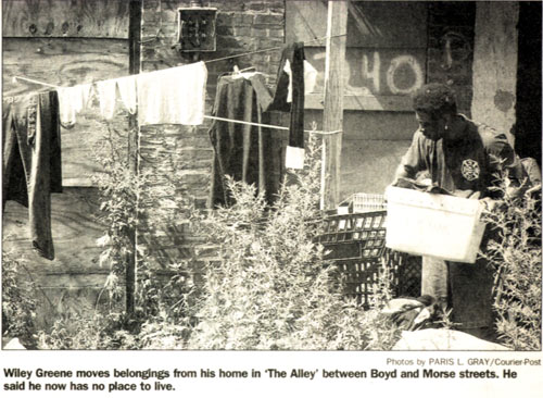 In the driver's seat of a backhoe, Camden Mayor Gwendolyn A. Faison took the first chunk out of 20 dilapidated homes that will be demolished in the area of the city known as "The Alley." "If you don't have quality of life, you don't have nothing," she said. Once a notorious open-air drug market operated by now convicted Jose "J.R." Rivera and Luis Figueroa, the alley lies in the 200 block of Boyd and Morse streets and remains lined with boarded brick homes, sprayed with graffiti, that were once a haven for drug dealers and prostitutes. Enid Gonzales, 45, moved to the alley four months ago and said she has seen drug activity creeping back into the alley. "Sometimes in the morning I'll come out and see needles on the ground," she said. "I'd rather have trash than that." She said the demolition will improve quality of life for her two children, but is worried her house will be demolished with the rest of the vacant homes. "I found out today what was happening," Gonzales said. "If they tear down my house, I'll be homeless." Gonzales also fears for the homeless who have made the alley their home. Wiley Greene, 40, who lives in one of the abandoned houses, said even though the demolition will leave him without shelter, it will make the area a safer place for resident children. "This has been needed for a long time," Greene said. "The kids need this - there is only so much the parents can do. "It's the better thing to do." Charles Grant, 17, has lived in the alley for 11 years and said he found out about the demolition on the morning news. "It's all right," he said. "I think what they're doing is pretty cool." Councilman Frank Moran spoke with Greene and offered to help him find temporary housing. Moran also said residents of the alley will be relocated, but discussions about when that will happen have not begun. "If it's a matter of eminent domain, they will be entitled to benefits," Moran said. Remembering a time when it was safe to ride his bike down the alley, Camden County Prosecutor Vincent P. Sarubbi said the long-needed demolition is another step toward Camden's "renaissance." "It's been a long time coming," Sarubbi said. "But there has to be economic revitalization to complete the cycle." New Jersey Attorney General Peter Harvey was at the site and said people should not have to live in conditions brought about by the alley. "Tearing down these 20 structures represents a physical renovation," he said. "There needs to be a human renovation as well to stop the violence." Faison said the demolition will be complete by July 31. Amid the yells of encouragement as Faison began the demolition, Camden resident Robin Perkins, 49, called it the "downfall of desolation." "This is a city of great things," Perkins said. "It is a city bolstering with hope and we're finally getting answers to our hope." Perkins, a member of the East Side Civic Association Inc., has lived in the city her entire life and said the alley used to be a part of her family's Sunday walk. "This used to be a place of such affluence," Perkins said. "Now residents can have a different quality of life which they so deserve." |