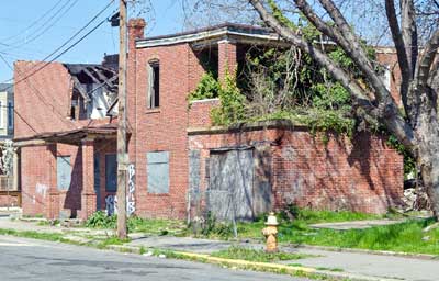 Intersection of Warsaw Street and Morton Street as seen from Lowell Street - March 19, 2012 | |
