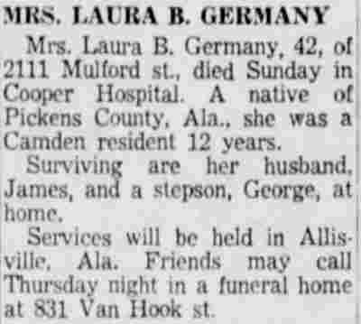 1947 Susie Roberts 1954-1959 Camden Courier-Post 2002 Gone |