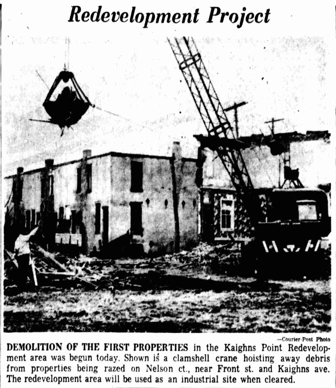 NELSON STREET, which also was known as Nelson Court ran one block from Boyer Street south to 131 Kaighn Avenue, between Front and South Second Streets. The street does not appear in the 1885 Sanborn Map of Camden. It does appear in the 1891 Sanborn Map, but at that time was known as Knight Street, with a few houses in place. By 1906 the 1100 Block of Knight Street had been renamed. It appears in the 1906 Sanborn Map as Nelson Court. A few homes remained on Nelson Street as late as 1961. In February of that year, Nelson Street was "erased" as part of a redevelopment plan. The Kaplan & Zubrin pickle factory erected a new building on what was Nelson Court. |