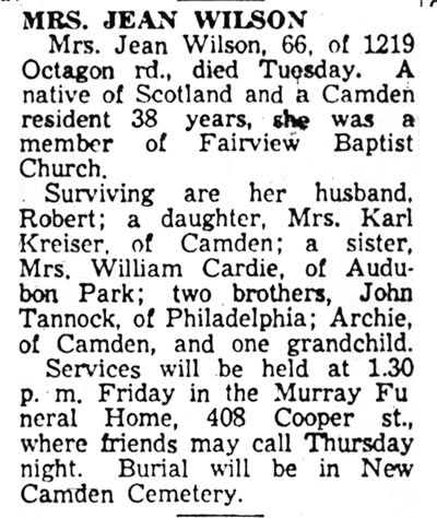 1219 Octagon Road 1947-1948 Robert Wilson & Family Camden Courier-Post |