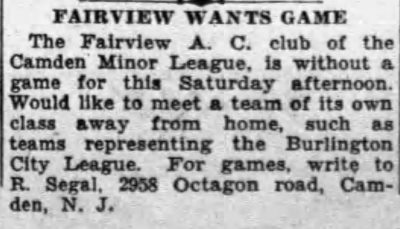 2958 Octagon Road 1922-1930s Camden Courier-Post |