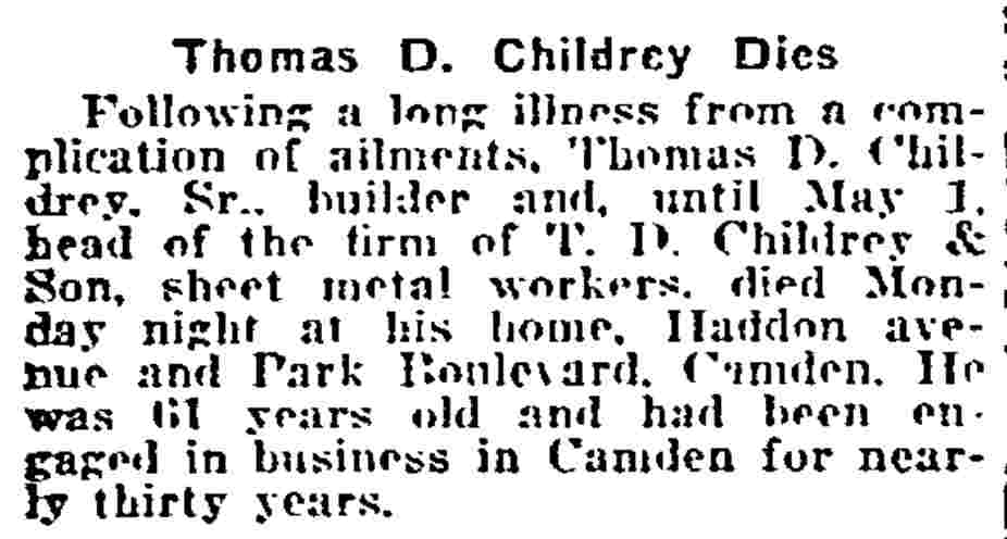 1522 Park Boulevard 1933 Michael & Rose Paiano Camden Courier-Post |