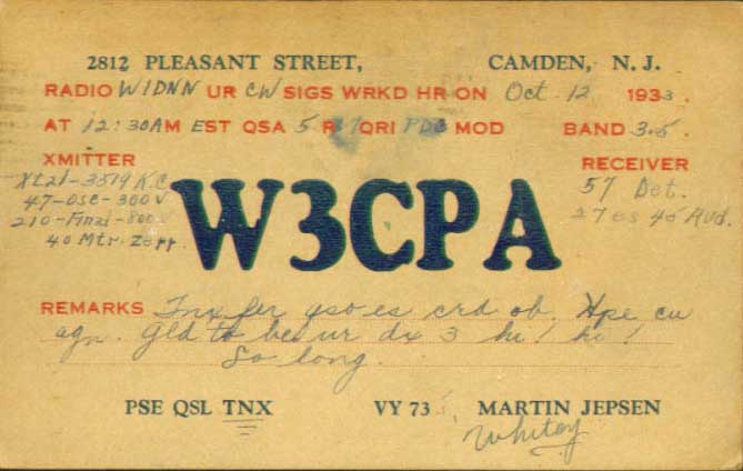 Card dated October 12, 1933 Click on Image to Enlarge |