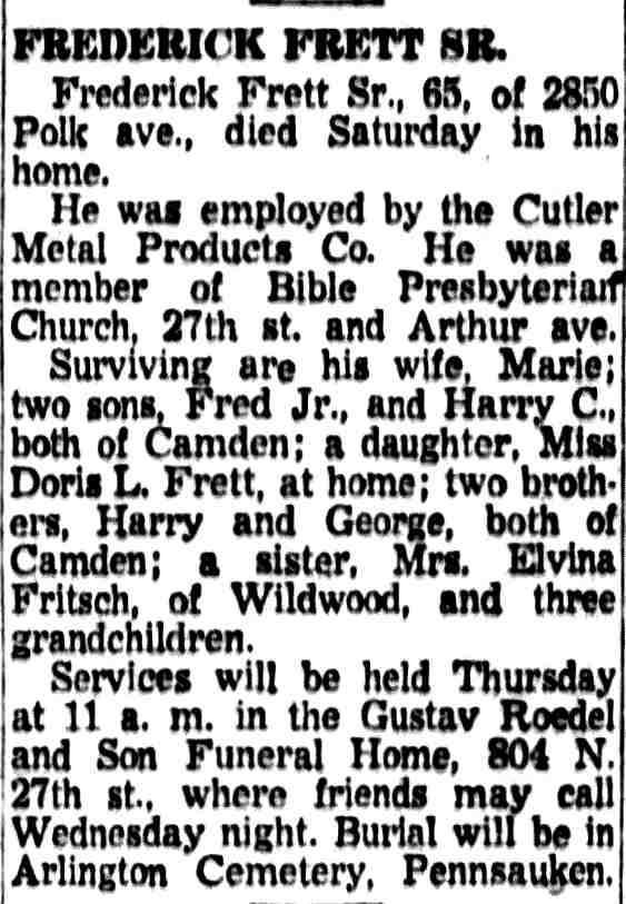1923-2015 Harry C. Frett & Family Camden Courier-Post |