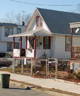 & Glenn Nasuti in the front yard of 3318 Remington Street Behind the boys and across the