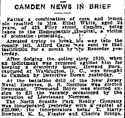 438 Riley Street 1914 Mrs. Ethel White Philadelphia Inquirer |