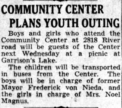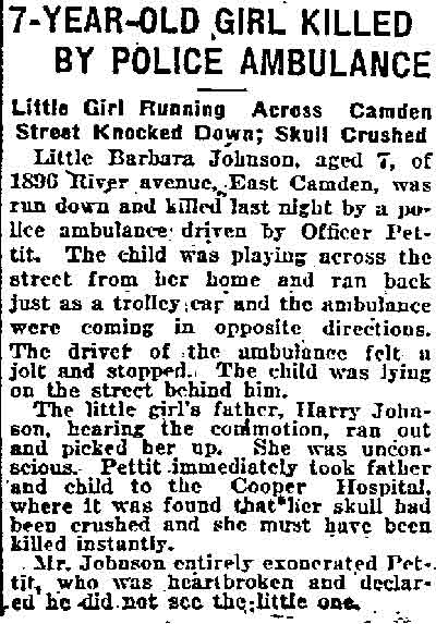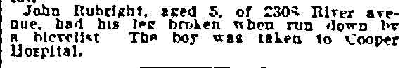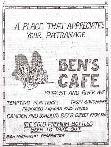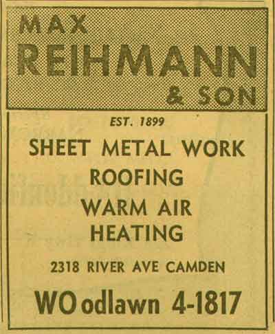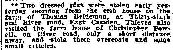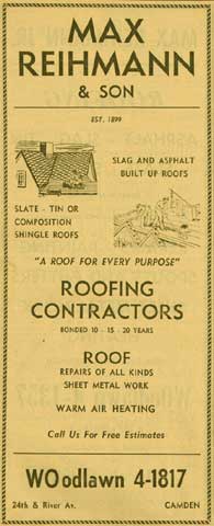 RIVER AVENUE, more popularly known as River Road, runs north from Federal Street to the City limits and, beyond, more or less all the way to Burlington. It became a Camden thoroughfare in 1899, when the town of Stockton, which consisted of all of present-day Camden north of the Cooper River, was united with the city. River Avenue, of course, is the main artery running through Cramer Hill, and was and still is the location of many stores and small businesses. |