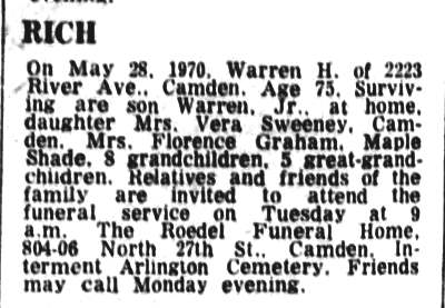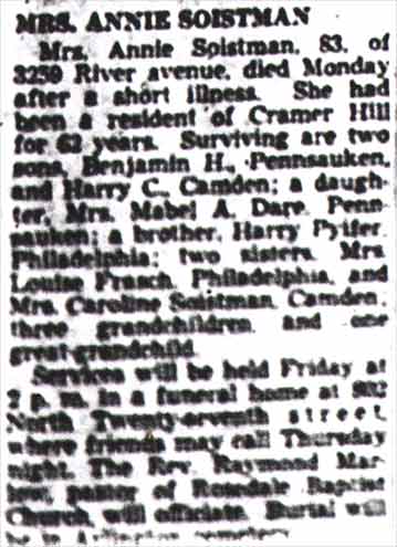 Inquirer Emma died September 21, 1894, Edward died May 4, 1896, and Martha Derndinger died December 28, 1898. The family then lived at 1111 Federal Street. |