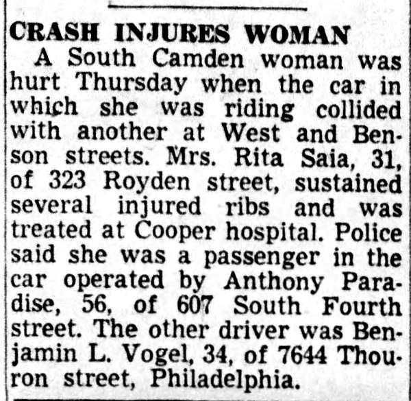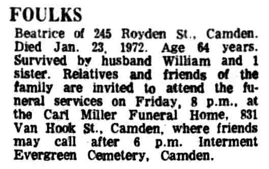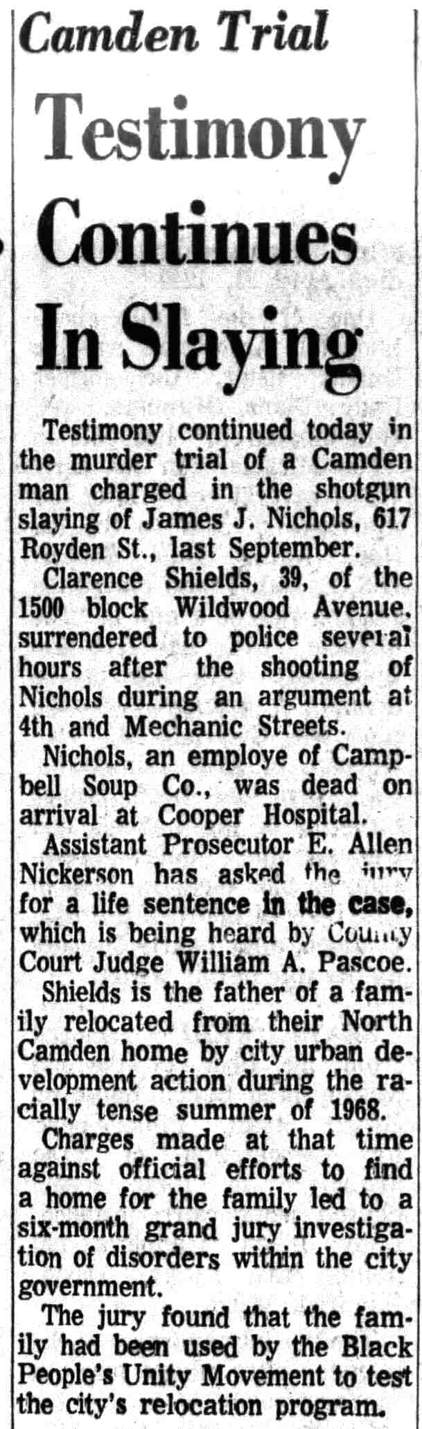 617 Royden Street 1970 James J. Nichols Camden Courier-Post Clarence Shields |