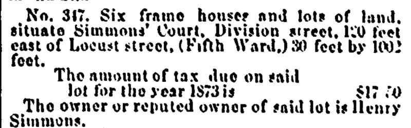 Simmons Court (most likely a typographical error, this was probably 813 Simmons Court) 1870 William Polk aka