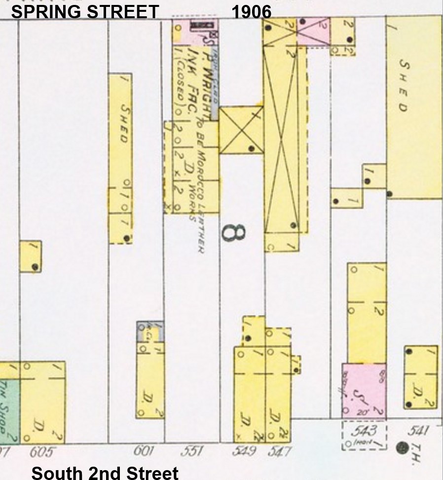 Sanborn Map S.P. Wright Ink Factory (closed) to beMorocco Leather Works The factory stood on the east side of Spring Street |