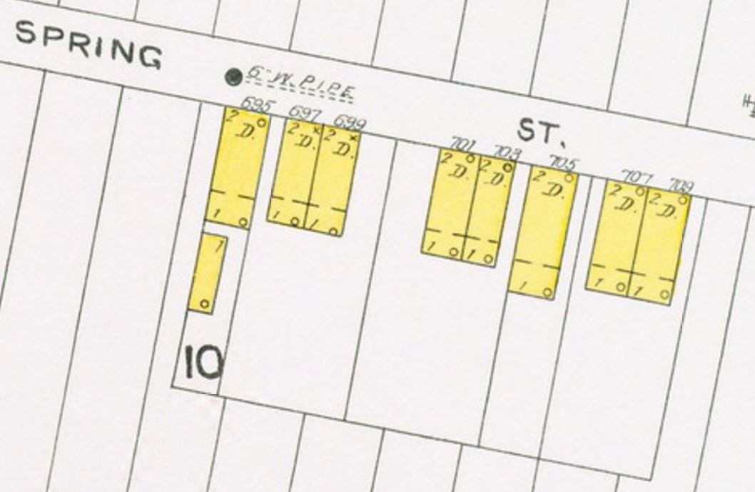 1906 Sanborn Map - Houses are on west side of Spring Street | |