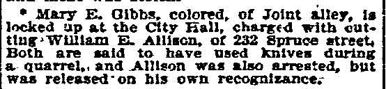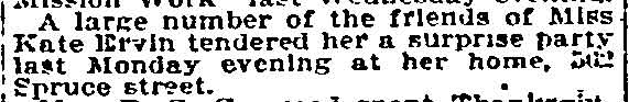 1920-1947 The three Clifton sisters and their cousin Sarah had lived at 438 Line Street as early as 1899 through at least the fall of 1918 before moving to 1007 Spruce Street. The women never married. Mary Clifton died April 30, 1937 and her sister Lida died the following day. Cousin Sarah Clifton passed on July 3, 1940. Emma Clifton was still living at 1007 Spruce when the 1947 City Directory was compiled. |