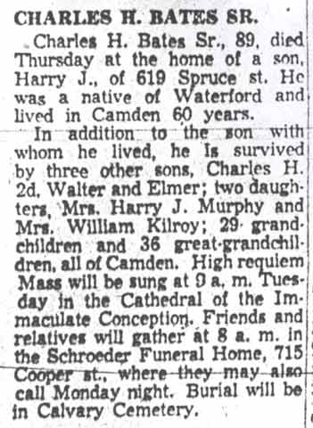 1939 The widow of Joseph J. Cox, who had died in 1934, Beulah Cox died on August 13, 1939 at the age of 74. A member of Trinity Episcopal Church, she was buried at New Camden Cemetery. She was survived by her grandson, Richard H. Murphy, his wife and daughter. |