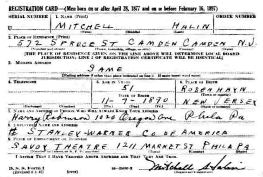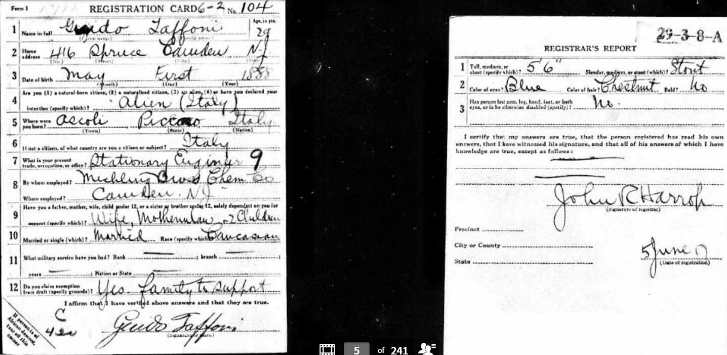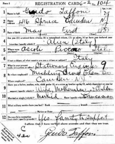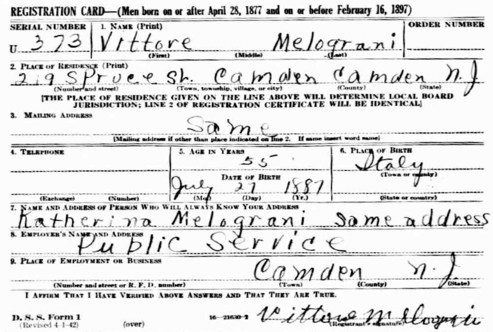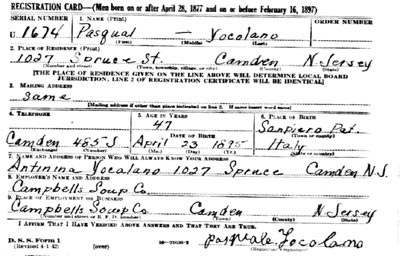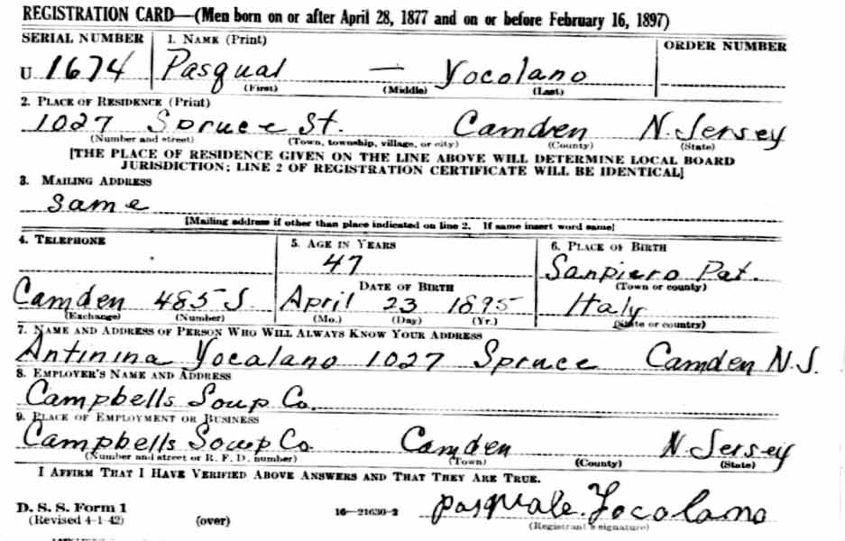 1930s-1940s Left: Pasquale Yocolano's draft card, Spring, 1942 |