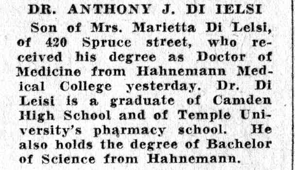 1915 Mrs. Lucia Lacrapara Philadelphia