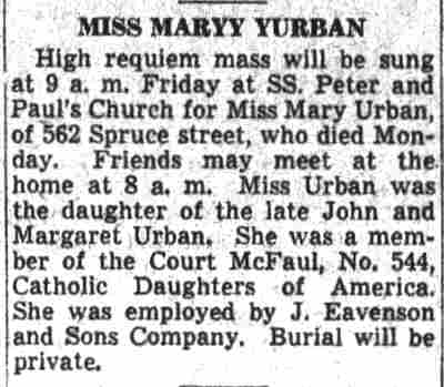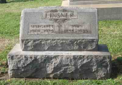 1922-1939 John T. Linsnser died in 1929 and was buried at Calvary Cemetery. Margaret Linsner, 78, a member of Ss. Peter & Paul Catholic Church, died of February 16, 1939. |