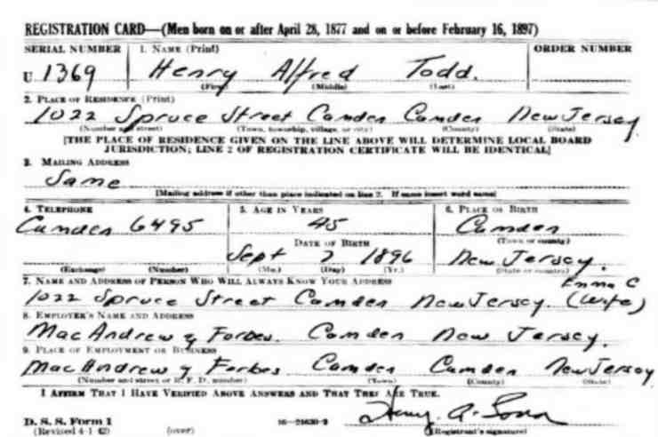 1922-1970s Henry Alfred Todd & Family Mrs. Emma J. Todd, 76, died on July 26, 1936 and was buried at Evergreen Cemetery. Charles A. Todd had died shortly before the compilation of the 1927 Camden City Directory. |