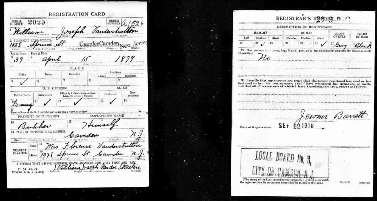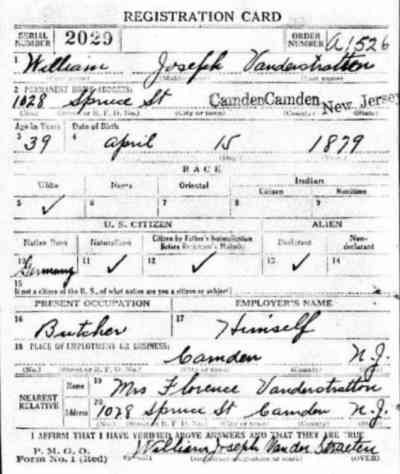 1905-1947 Left: World War I Draft Card, September 12, 1918 Florence Goldenberg Van Der Straeten died September 25, 1945 and was buried at Calvary Cemetery. |