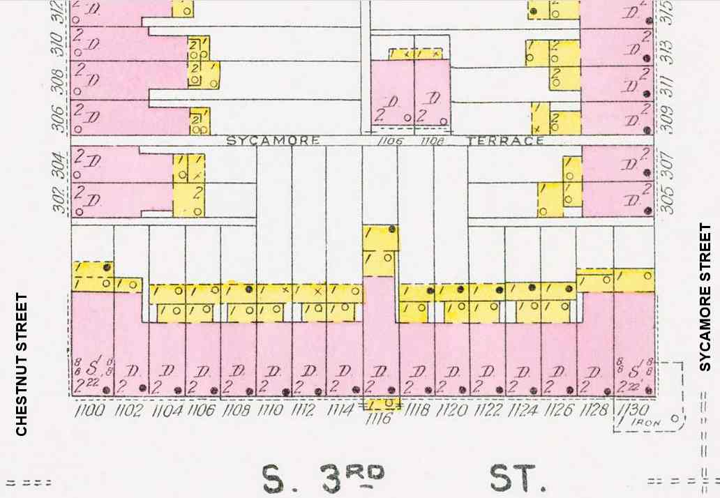 Sycamore Terrace also appears in the 1891 Sanborn Maps, with the same buildings | |