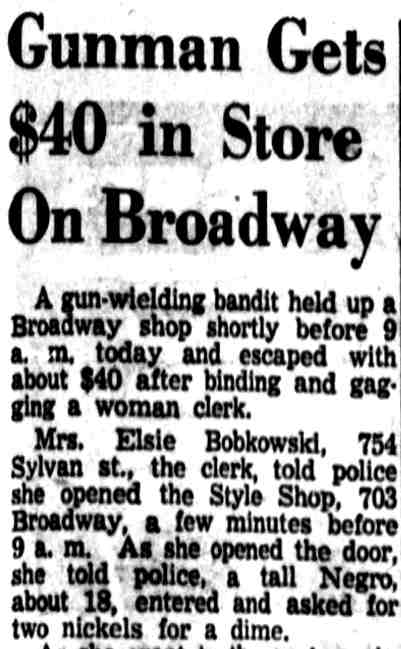 MOTHER ACCUSES Accused by his mother of stealing two bracelets, Louis Hopper, 25, who said he has no home, was sentenced to 30 days in jail yesterday by Police Judge Garfield Pancoast in lieu of a $25 fine. Mrs. Anna Hopper, 731 Sylvan Street, said her son came to her home last Saturday and took the bracelets. Hopper said he took them only for a "joke" and declared he returned them Tuesday. |