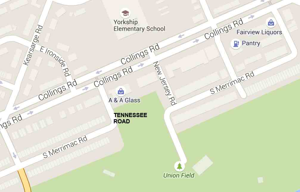 TENNESSEE ROAD is a one block long thoroughfare that runs from Collings Road south to New Merrimac Road, between New Jersey Road and Kearsarge Road, across the street and to the southwest from Yorkship School. There are no houses or businesses that front onto Tennessee Road. Over the years Tennesse Road has probably seen a lot more foot traffic than vehicle traffic, as it has been utilized as a shortcut to and from what is now known as Malandra Hall, the baseball diamonds, tennis courts, basketball court, and street hockey rink located east of Kearsarge Road below South Merrimac Road. Tennessee Road is named after the battleship USS Tennessee BB-43. The Tennessee's keel was laid down on May 14, 1917 at the New York Shipbuilding Corporation shipyard. She was launched on April 30 1919, sponsored by Miss Helen Lenore Roberts, daughter of Tennessee governor Albert H. Roberts, and commissioned on 3 June 1920, Captain Richard H. Leigh in command. tennessee was damaged at Pearl Harbor, repaired, and saw considerable action in the South Pacific during World War II. |