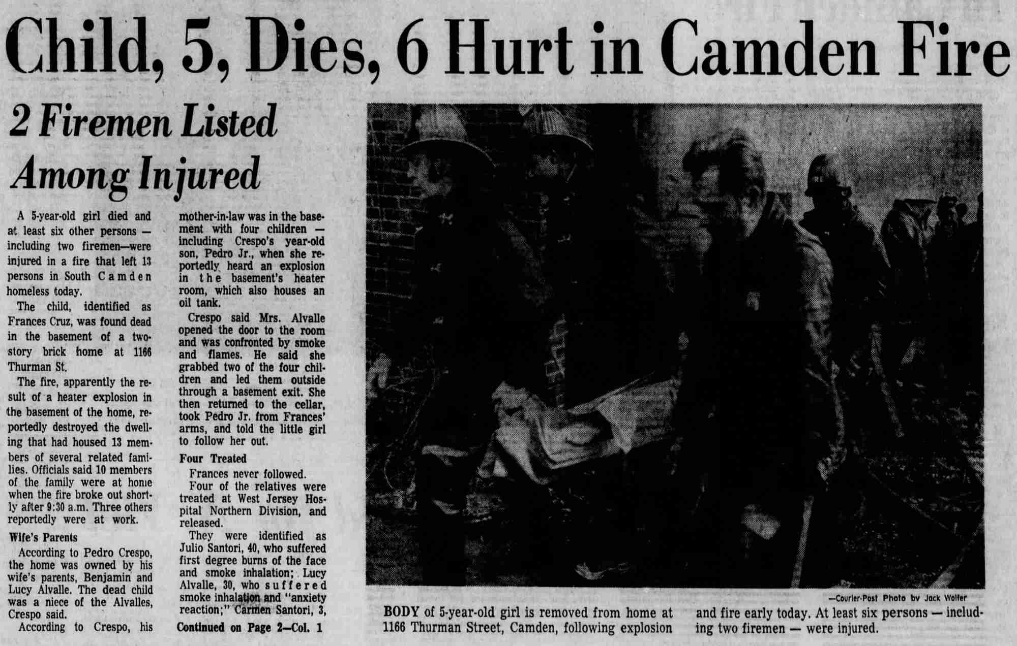 Camden Courier-Post Deadly fire in Camden on Thurman St. Two people were killed in a fire at 1040 Thurman Street in Camden, according to police officials. Camden