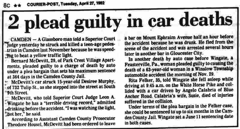 1981 Desiree Murphy Camden Courier-Post Albert Handy Click on Image to Enlarge |