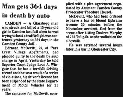 1981 Desiree Murphy Camden Courier-Post Leon A. Wingate Click on Image to Enlarge |