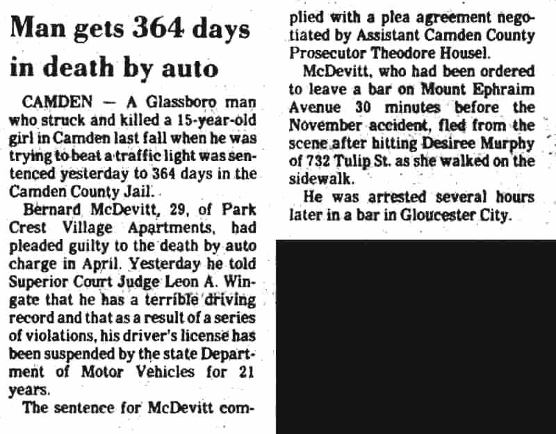 1981 Desiree Murphy Camden Courier-Post Leon A. Wingate Click on Image to Enlarge