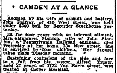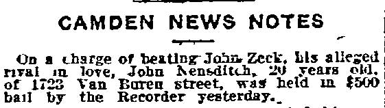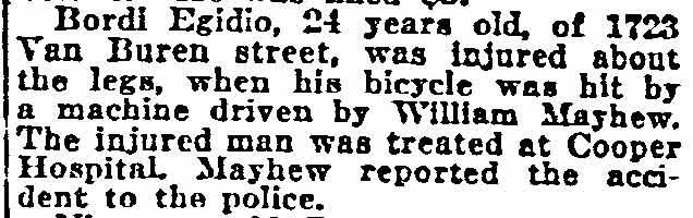 A Camden father was in county jail today because his 10-year-old son accidentally shot himself with a revolver he got from the family car. James Hayes, 37, 01 2135 Van Buren Street was remanded to county jail by Judge Dzick on charges of illegal possession of a firearm. The boy, Earl, is in West Jersey Hospital with a wound to his left hand. Police said the lad told them he shot himself Saturday with a .32 caliber gun he had found under the front seat of the auto. Detective Walter Szalanski told Judge Dzick that the elder Hayes said a friend placed the weapon in his car two months ago and that he forgot about it. Hayes’ story in court today was that someone placed the gun in the car to get him in trouble with the authorities. He said he had also discovered several pounds of sugar in the auto gas tank. |