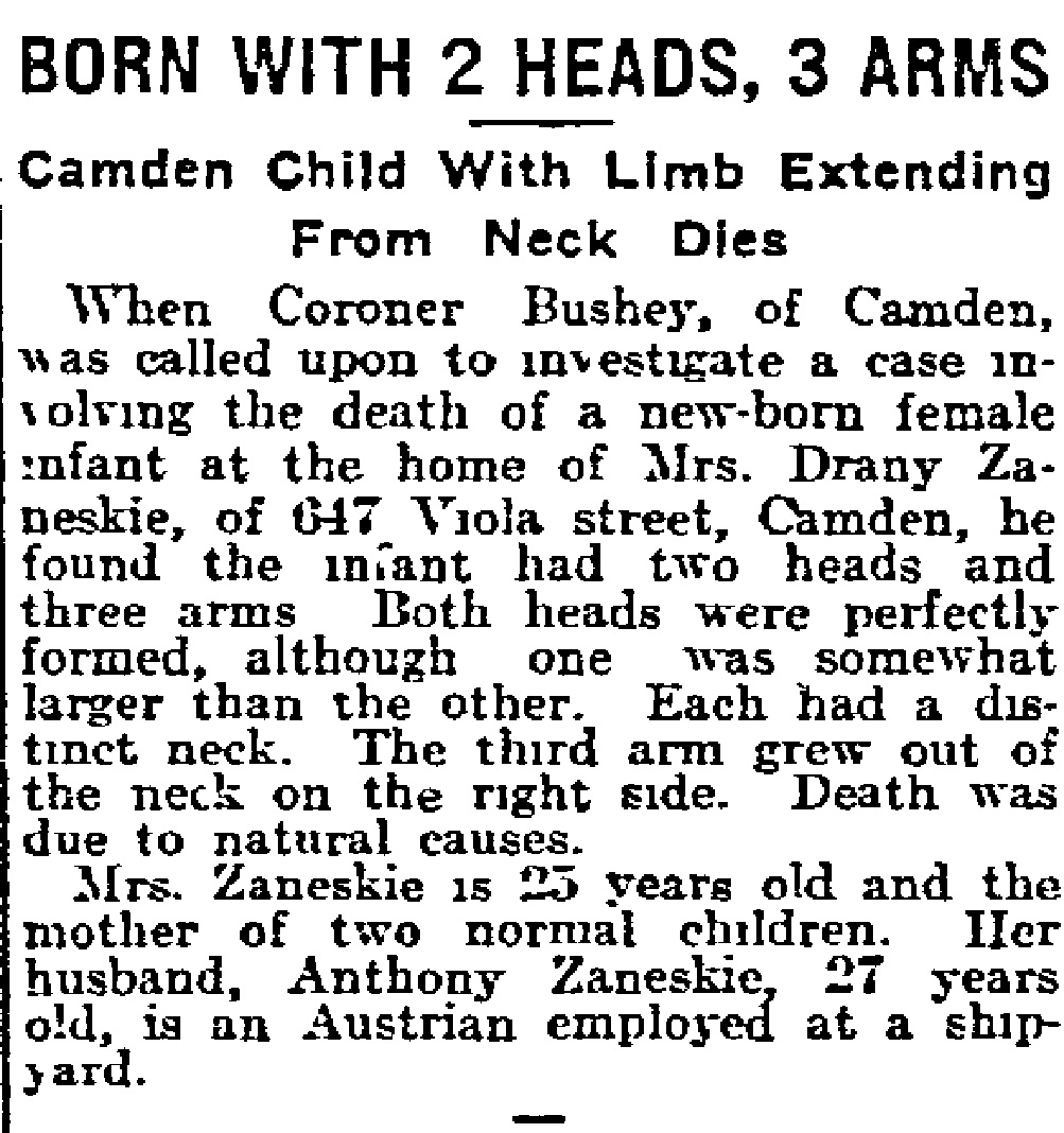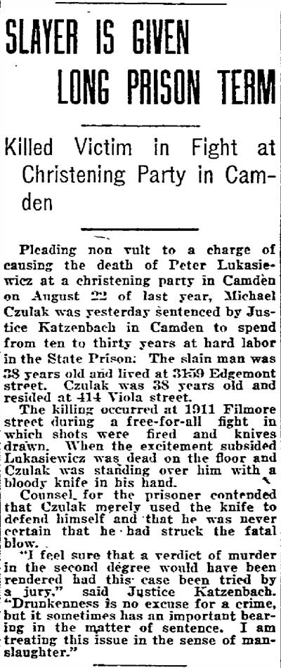 1921 Michael Czulak Philadelphia Inquirer Fillmore Street |