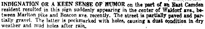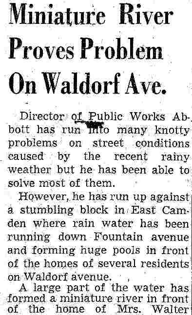 WALDORF AVENUE is in East Camden, running south from 285 Burwood Avenue to Marlton Avenue, one block west of Highland Avenue. There were only fifteen homes on Waldorf Avenue when the 1947 City Directory was compiled. A number of duplexes and rowhomes were built not long afterwards. |
