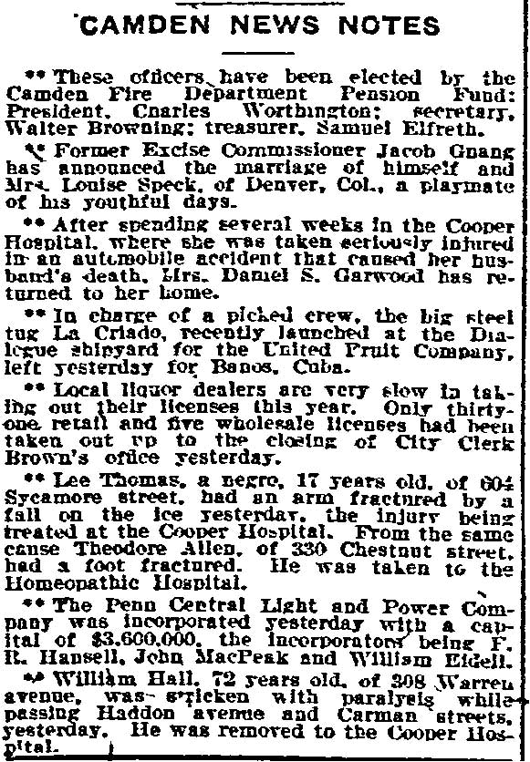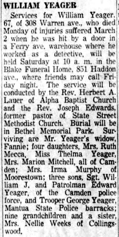 Jr., of Collingswood, and a sister, Mrs. Warren THOMAS—Suddenly