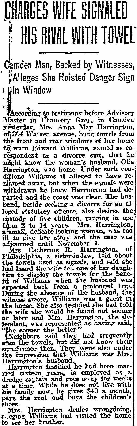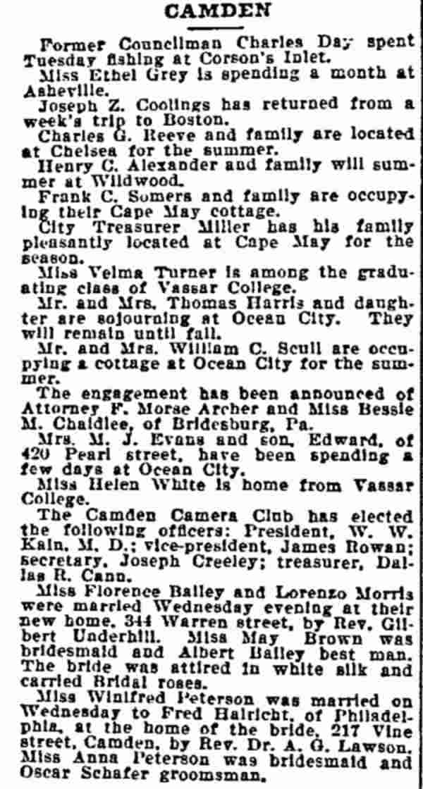 PERSONS DIVIDE ESTATE OF $50,000 An inventory filed yesterday with Surrogate Frank B. Hanna sets the value of the estate of Mrs. Pauline H. Friedrich, late of Mt. Ephraim, at $50,842.62. The inventory was prepared by theCamden Safe Deposit &. Trust Co., executors of Mrs. Friedrich's will. Mrs. Friedrich died last June 12. Under provisions of the will, two nephews, Henry F. and Frank Burnett, of Philadelphia, will each received $200; Anna Buckingham, a friend, will get $400, and the remainder will be divided equally among six grandchildren. They are Edna, Freda, Ida, Helen, Louis and Frank Bader, of Lawndale, Pa. Edna Bader also inherits the Friedrich property at Kings Highway and Black Horse pike, Mt. Ephraim. Mrs. Edna C. Wasserman, Camden, a daughter, inherits the residue of the $2900 estate of Mrs. Laura Boone who died January 27. Although the husband, George Boone, is not mentioned in the will, Walter S. Keown, executor of the estate, said he will get his share as allowed by law. Mrs. Helen R. Carr, a daughter, of this city, gets $500 of the estate left by Frank Riggins who died February 1. Mrs. Mary Riggins, the widow, of 303 Warren Avenue, is named executrix and gets the residue. |