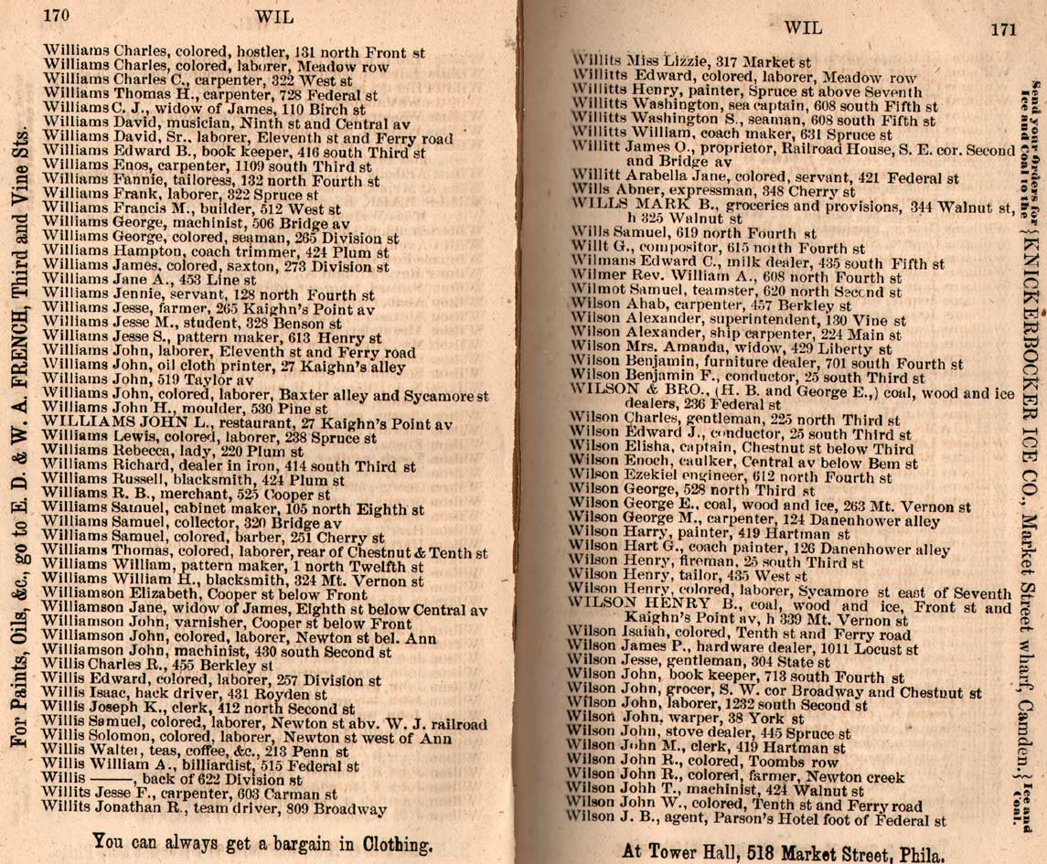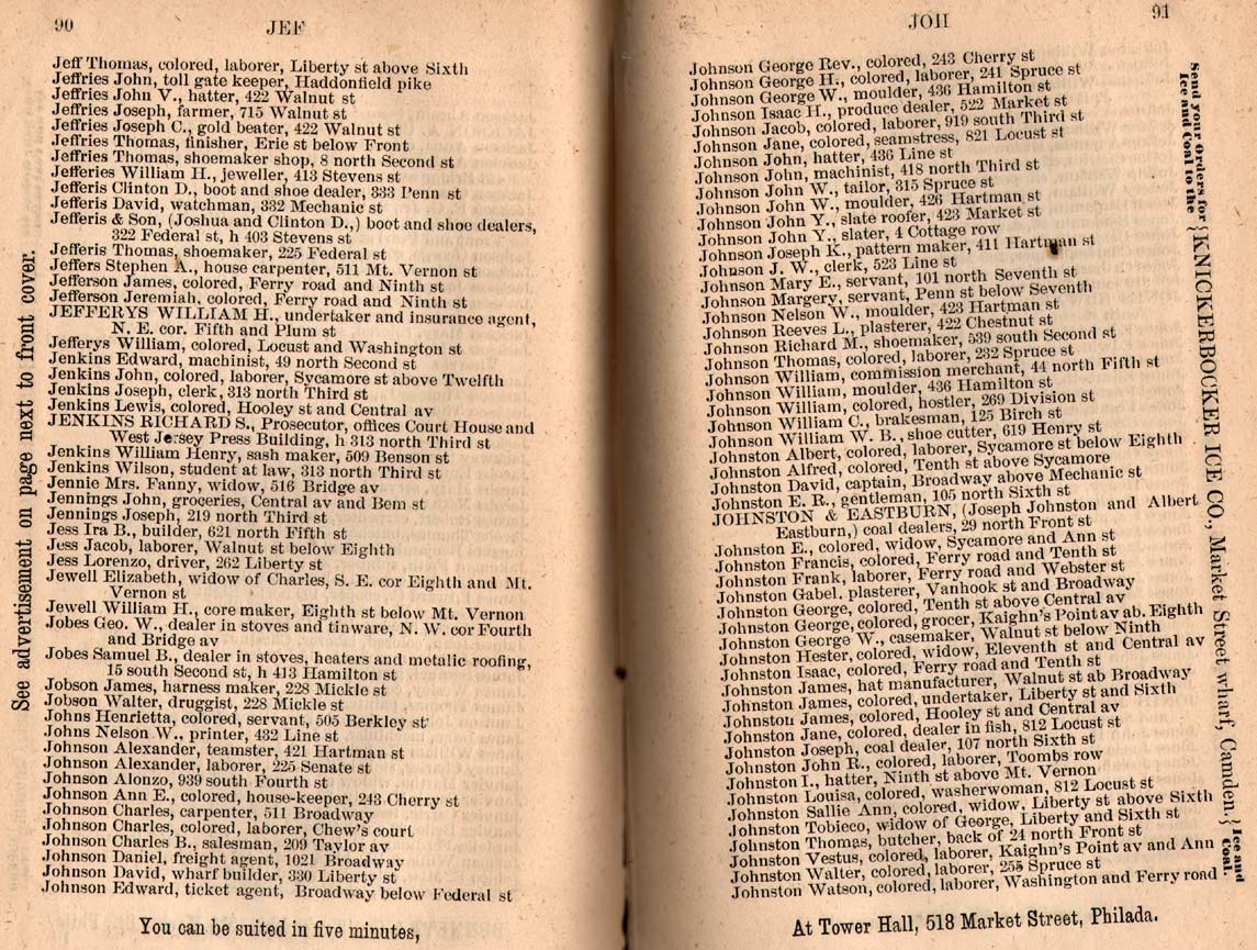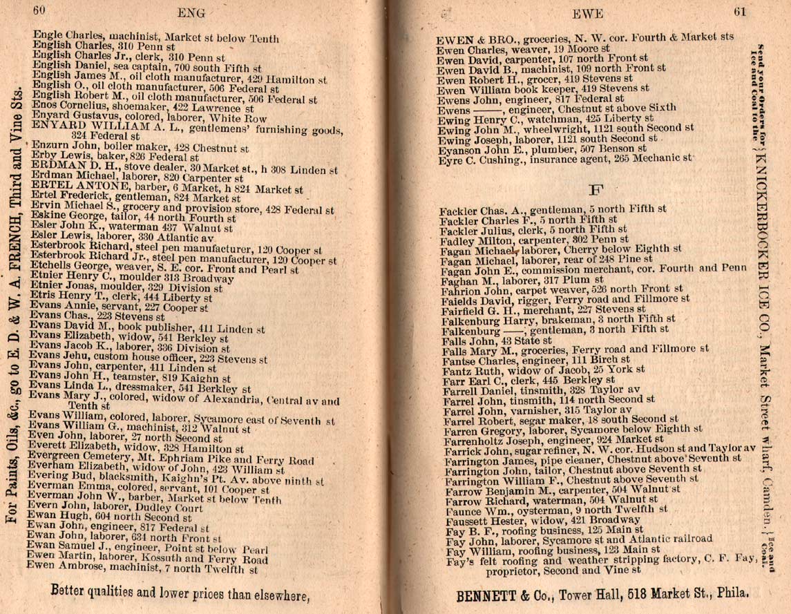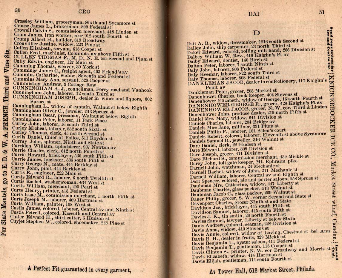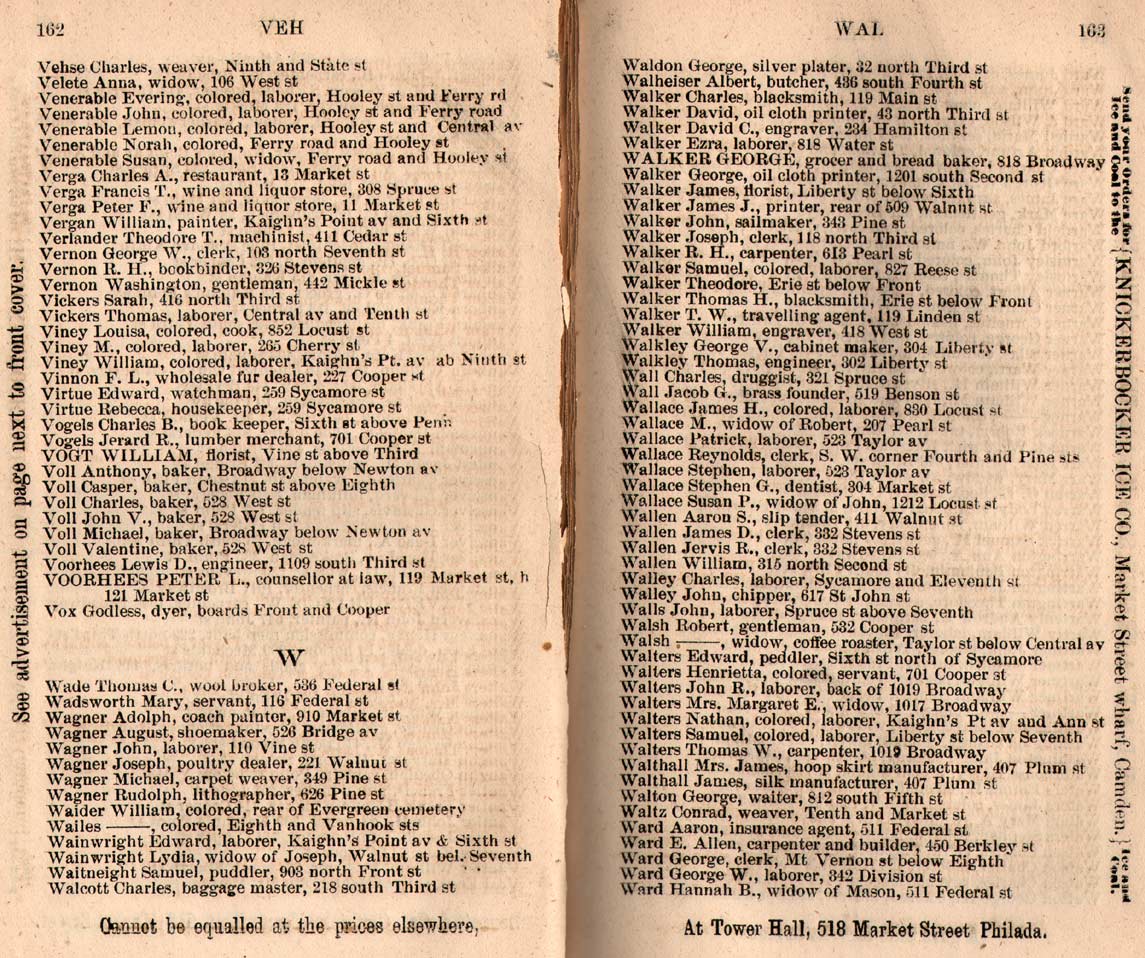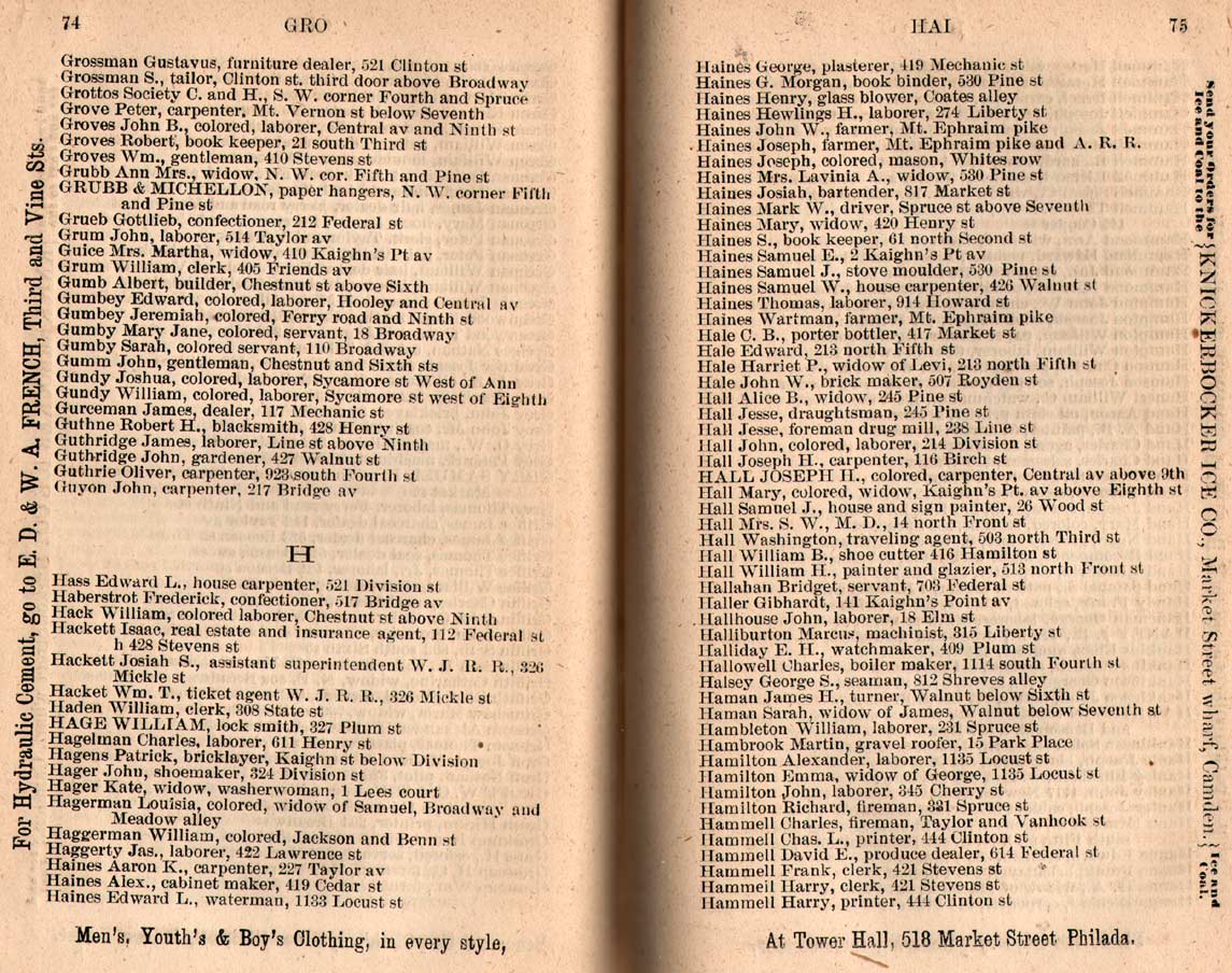DAVID RITTENHOUSE, President. STANDING COMMITTEES. Teachers and City Board of Examiners.- William Fewsmith, 611 Cooper street; James M. Cassady, 128 Federal street; David Rittenhouse, 213 Kaighn's Point Avenue. Accounts.-Timothy C. Moore, 7 South Third Street; David L. Taylor, 316 North Second Street; Thomas McDoweIl, 818 South Fifth Street. Property.-Mayberry E. Harden, 319 Mt. Vernon Street; Timothy C. Moore, 7 South Third Street; James Kennedy, Sr., Davis B. Litzenburg, Broadway, Centreville; William Fewsmith, 611 Cooper street. Supplies.-Joseph C. De La Cour, S. W. corner Third and Plum Street; James M. Ridge, M.D., 304 Mickle Street; John Dobbins, Broadway, Centreville. Permits.-James M. Cassady, Third and Fourth Wards, First District; Joseph C. De La Cour, First and Second Wards,. Second District; David Rittenhouse, Fifth and Sixth Wards, Third District; Caleb F. Rogers, Seventh Ward, Fourth District; John Dobbins, Eighth Ward, Fifth District. Books.-Charles W. Satori, M. D., 514 Federal Street; Caleb F. Rogers; David L. Taylor, 316 North Second Street. Printing.-Levi B. Newton, 903 South Fifth Street; James Kennedy, Sr.; John Dobbins. |