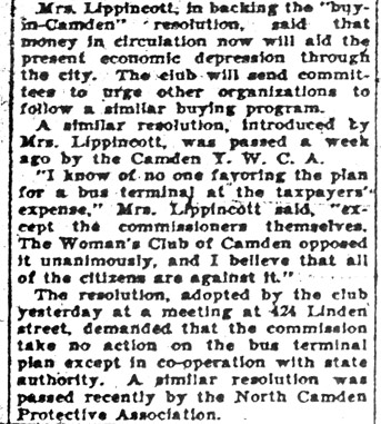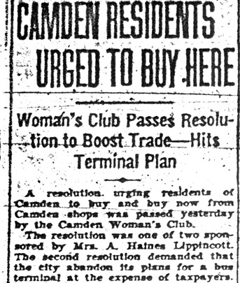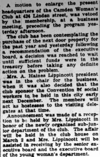 Mrs. A. Haines Lippincott - Camden Women's Club - Linden Street - Camden Y.W.C.A. |