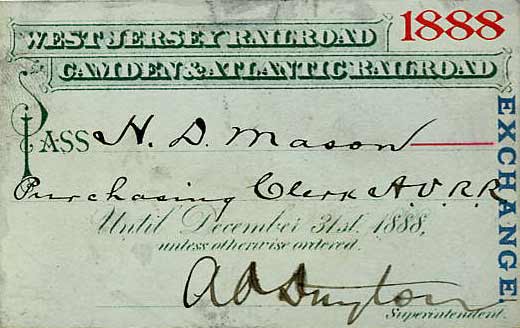 The rate of fare on all ferry boats between Camden and Philadelphia was reduced to three cents, and nine tickets for twenty-five cents. |