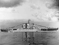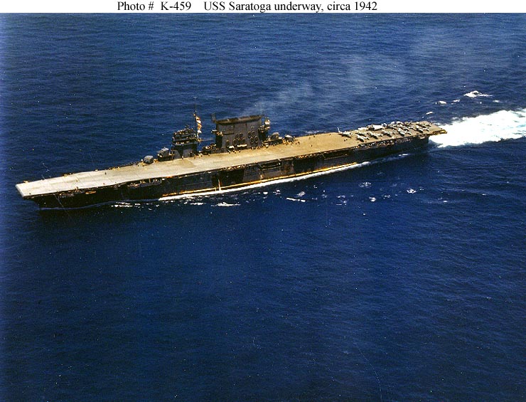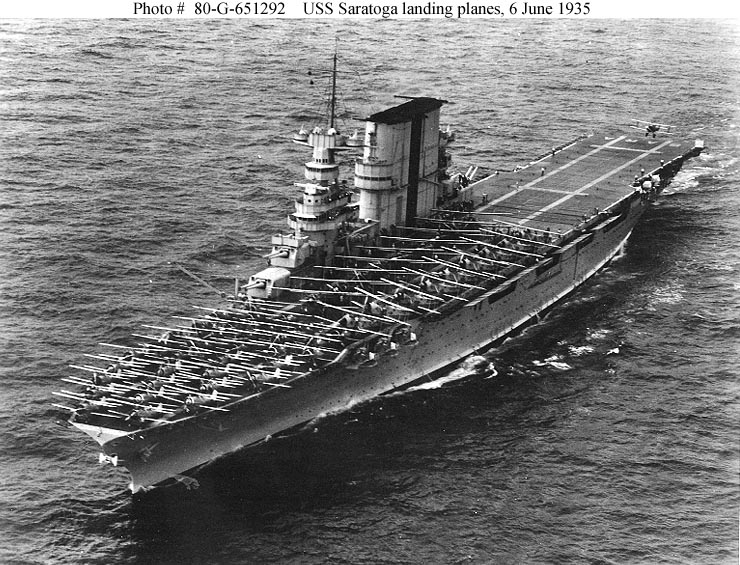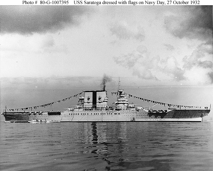 Camden to the League Island Navy Yard on November 23, 1927. USS Saratoga , a 43,500-ton Lexington class battle cruiser, was laid down at the New York Shipbuilding Corporation shipyard in Camden in September 1920. Her construction was suspended in February 1922, under the terms of the Washington Naval Limitations Treaty. As the treaty allowed, she was converted to the aircraft carrier Saratoga (CV-3), beginning later in that year. Click here for views of USS Saratoga (CC-3) while she was under construction as a battle cruiser. |