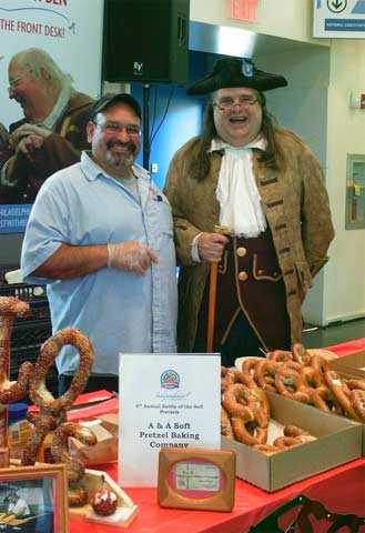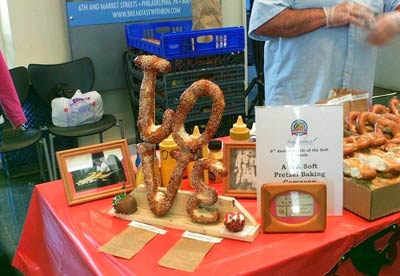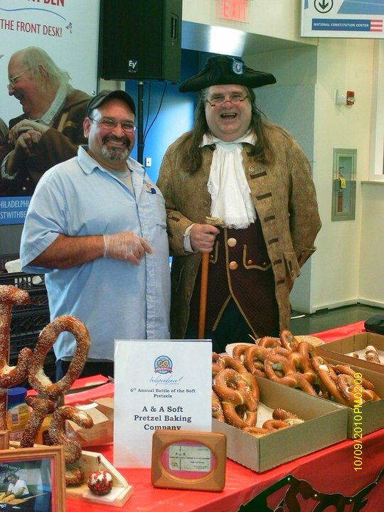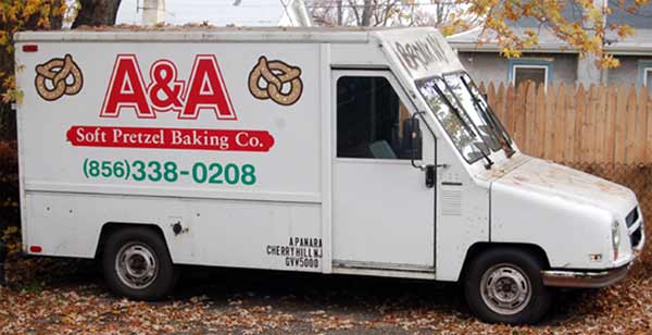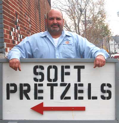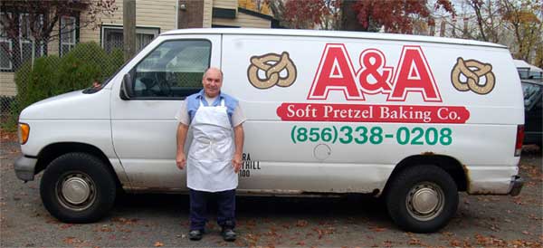 Established in South Philadelphia in the 1920s, the Panara family's A&A Soft Pretzel Baking Company first moved to Camden in 1976. The first location was in the former home of the old Deluxe Italian Bakery Inc. building at 320 Stevens Street. In 1985 the Panara family acquired the buildings at 1100-1106 North 32nd Street, on the northwest corner of North 32nd Street and Pierce Avenue in the Cramer Hill section of Camden. Four generations of the Panara family have worked in the business Today brothers Nick and Al Panara, who literally grew up baking pretzels, along with Al Panara Jr, helm the enterprise. In October of 2010 the family decided to open the bakery to the retail trade, and have made many new friends in the immediate neighborhood. On October 14, 2010 A&A Soft Pretzel Baking Company was awarded First Prize in the "Battle of the Soft Pretzels" for the best pretzel topping. The event was held in Philadelphia at the Independence Center. Take it from one who knows, a pretzel from Philadelphia may be alright, but a fresh pretzel from Camden is special! Do yourself a favor, drive down to Cramer Hill, stop in at the bakery, and get your pretzels straight out of the oven! Perfect for fundraising and outdoor events, call to arrange delivery. |