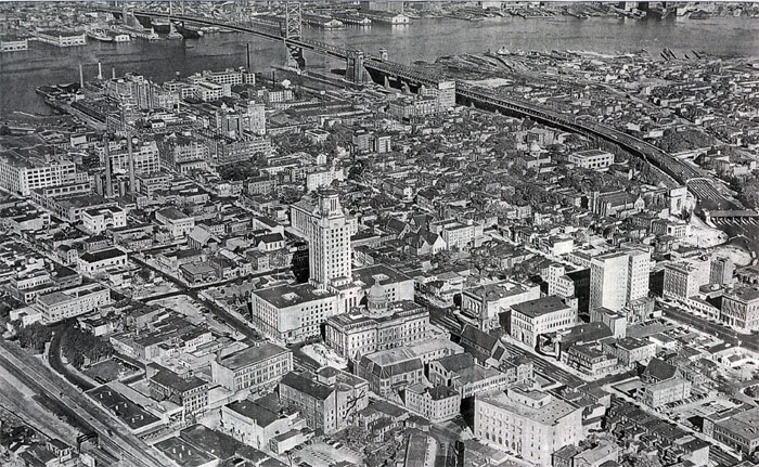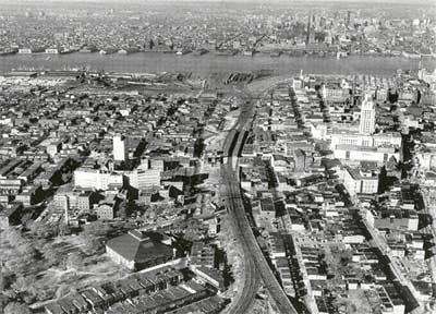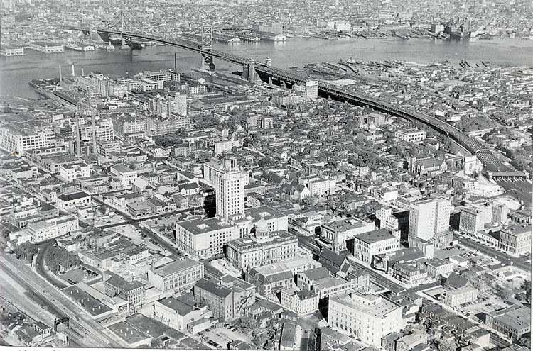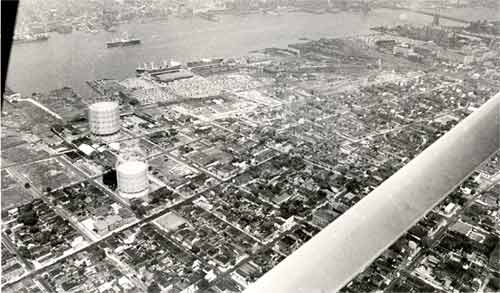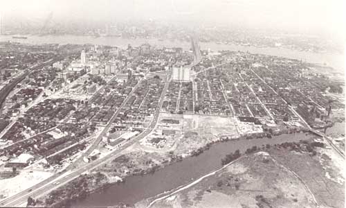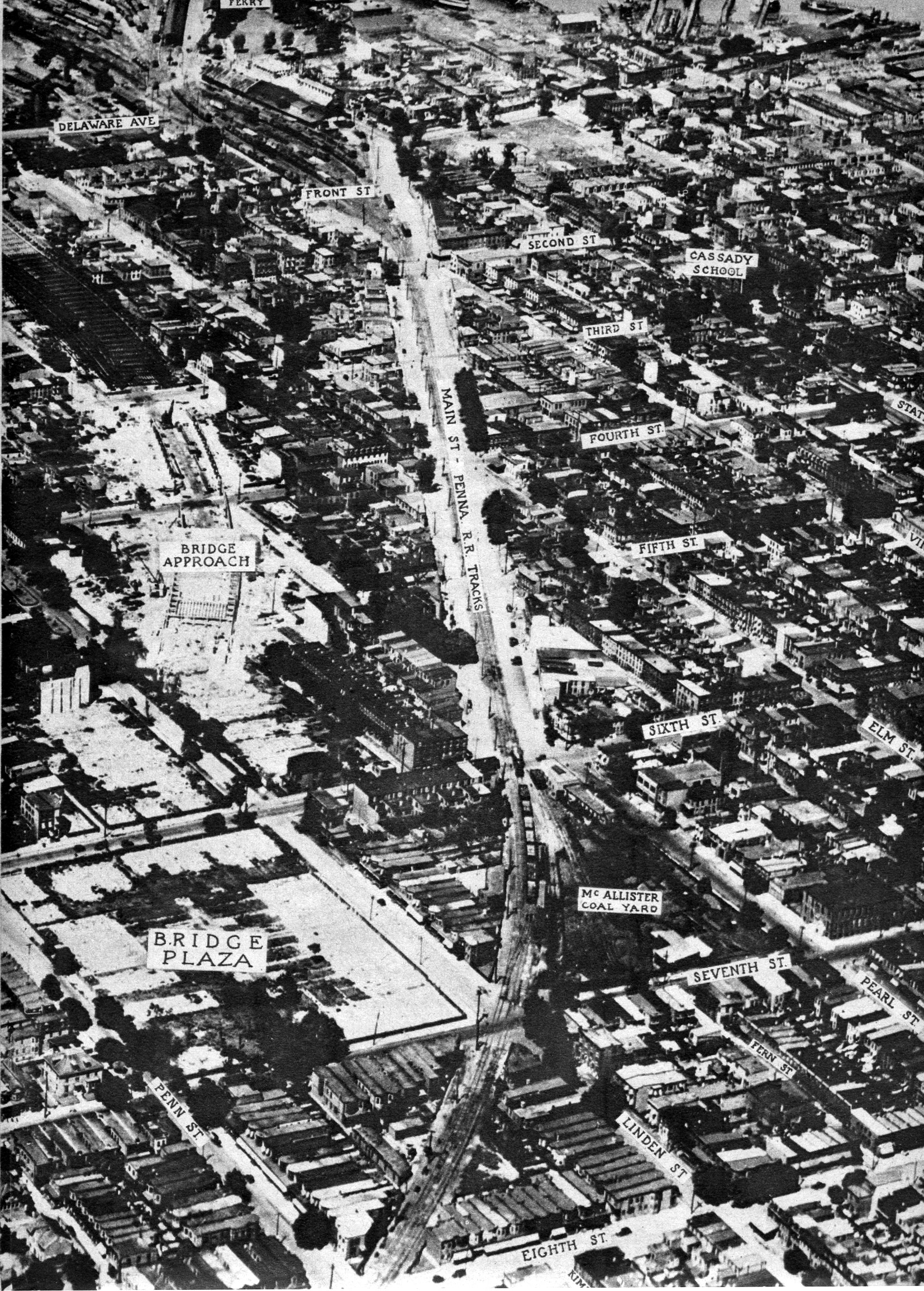 Over the years many aerial photographs have been taken of Camden. Many were taken for commercial purposes, while others, specifically those taken by Camden Fire Department photographer Bob Bartosz, were made simply for the purpose of chronicling changes occurring in the city. Still others were taken from fixed elevation such as City Hall, by Bob Bartosz and other photographers down through the years. Dave Boone, best known for his tugboat paintings, and Paul Huber have also furnished images seen here. The photographs will be presented hear in more or less chronological order. Every photo will, when clicked, on display an enlarged version, and many of the pictures offer on or more "supersized" views. Needless to say, new images are ALWAYS welcome! |