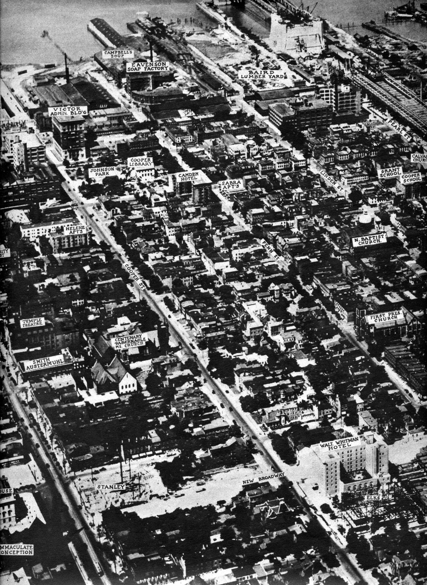 1930s Looking West from Central Airport Parkside at upper Left; East Camden at upper right; Intersection of Baird & Admiral Wilson Blvds at Upper Center Click on Image to Enlarge |