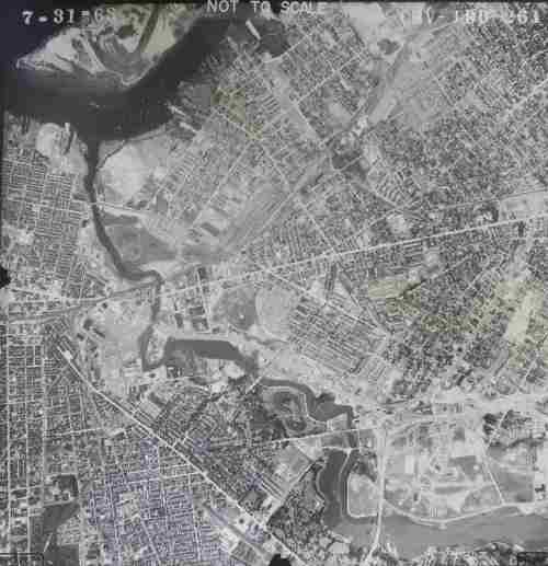 River West of Railroad Tracks Latin Casino in lower right Corner July 7, 1965 |
