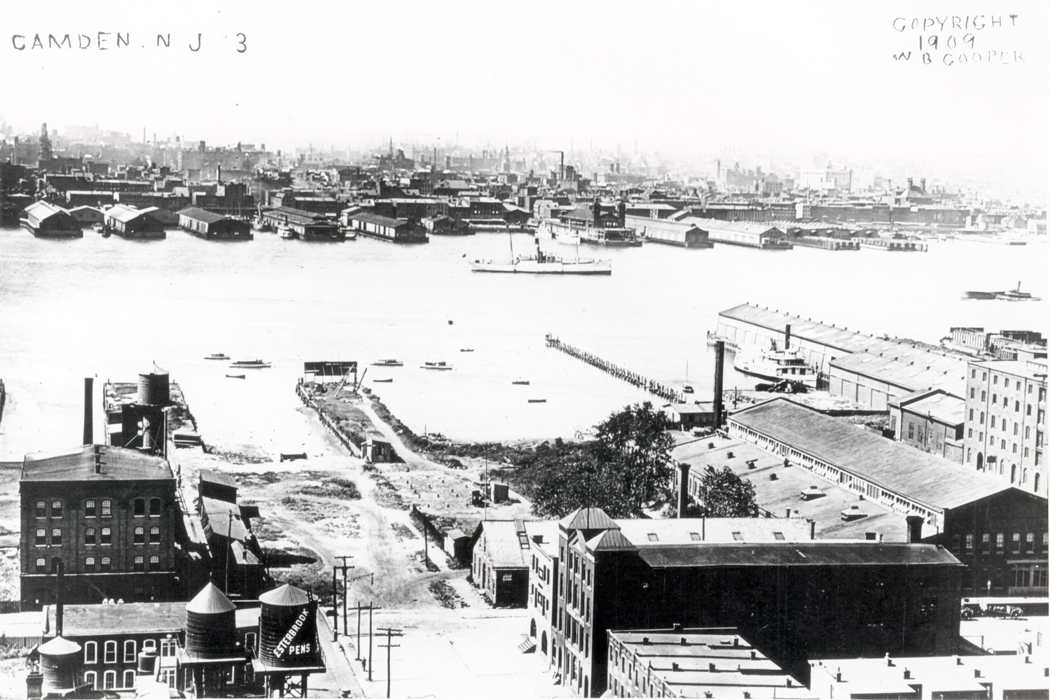 - Camden East of the Delaware River The Hotel Walt Whitman, newly built, is the tall building at upper extreme right |