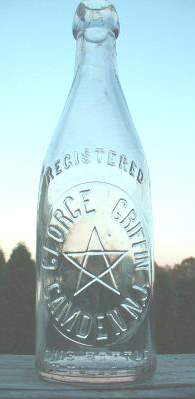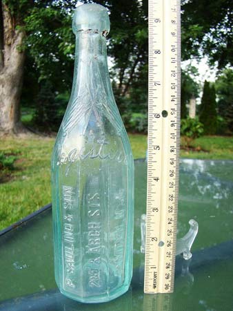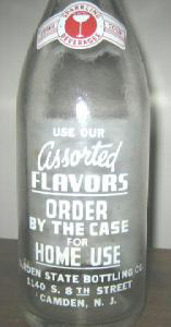 Bottling Works13th Ward Bottling Co. was run by A. Wysocki at 1313 Chase St. from 1929 through the mid 50's, they are also recorded as being at 1312 Morton St. in 1939 for some reason. they may have been around a little earlier than '29, as their oldest crowns are hand finished and will turn amethyst. The fancy embossed diamond plate crown shown dates to around 1930, earlier crowns are plainer and have a round slug plate without the embossed bird. The painted label Camden Club bottles are from the 40's, all show the same scene (supposedly the Ben Franklin bridge, but doesn't really resemble it much). The early embossed bottles are scarce, as are the 12 oz. and quart ACL bottles; the small size ACL turns up more regularly. Because of the bridge picture, the ACL bottles are in high demand nationally from painted label soda collectors and rather valuable at present.