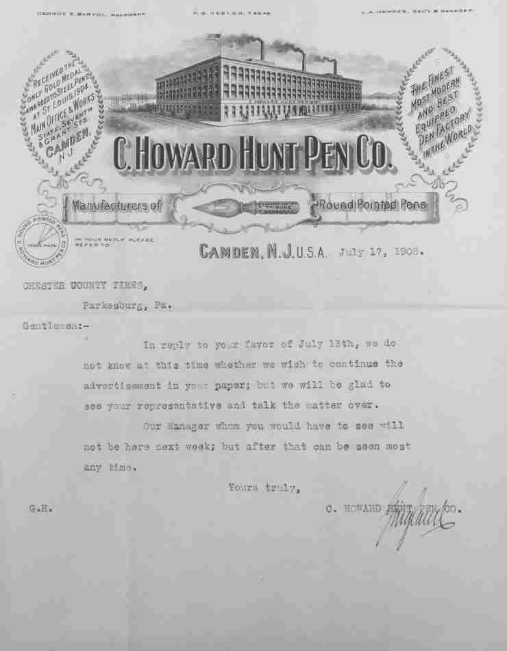 lines. George took the patent to the C. Howard Hunt Pen