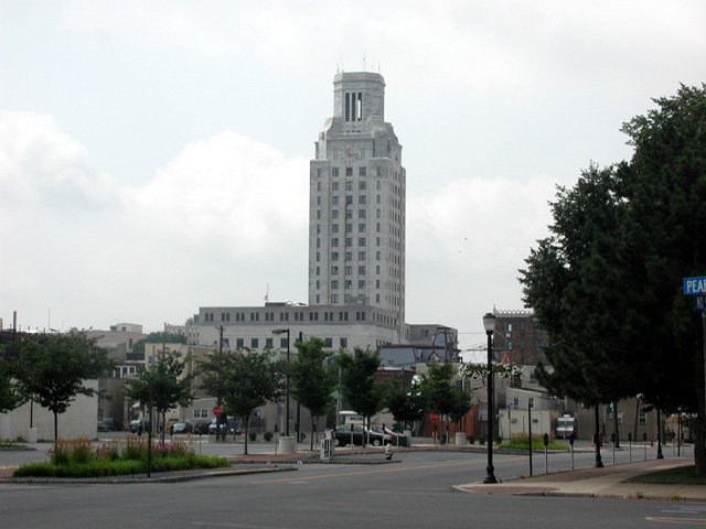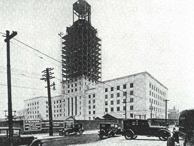 Photographed from the corner of 5th and Federal Streets, this picture, taken in 1930, shows City Hall and the clock tower under construction. |
