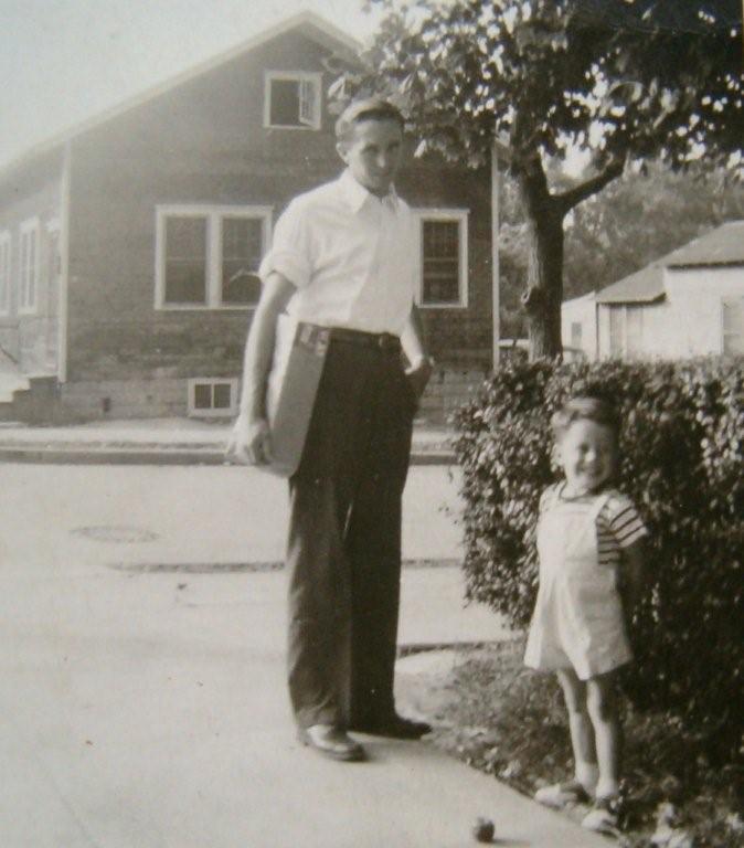 Dad and me before Orris was killed. This was taken on 29th and Buren Avenue which was very close to the river and the house where the man kept his horse that pulled the wagon. |